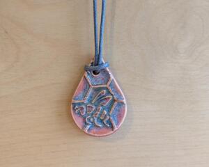 Artisan Handmade Ceramic Pendant Necklace - Bee & Honeycomb -...