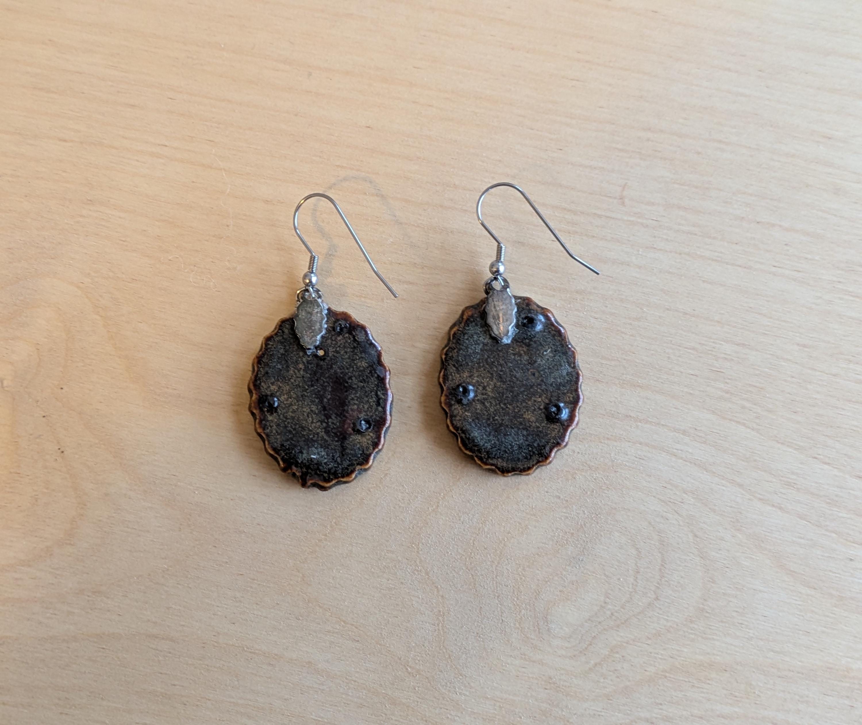 I made two pairs of these earrings; the glaze on the pair you receive may vary slightly from the pair pictured.