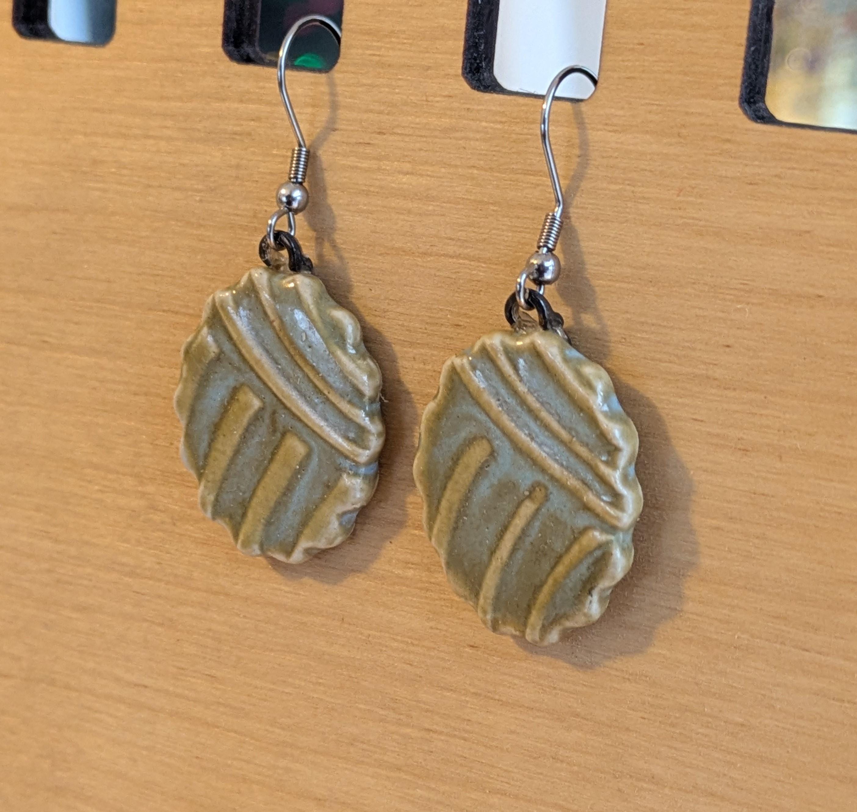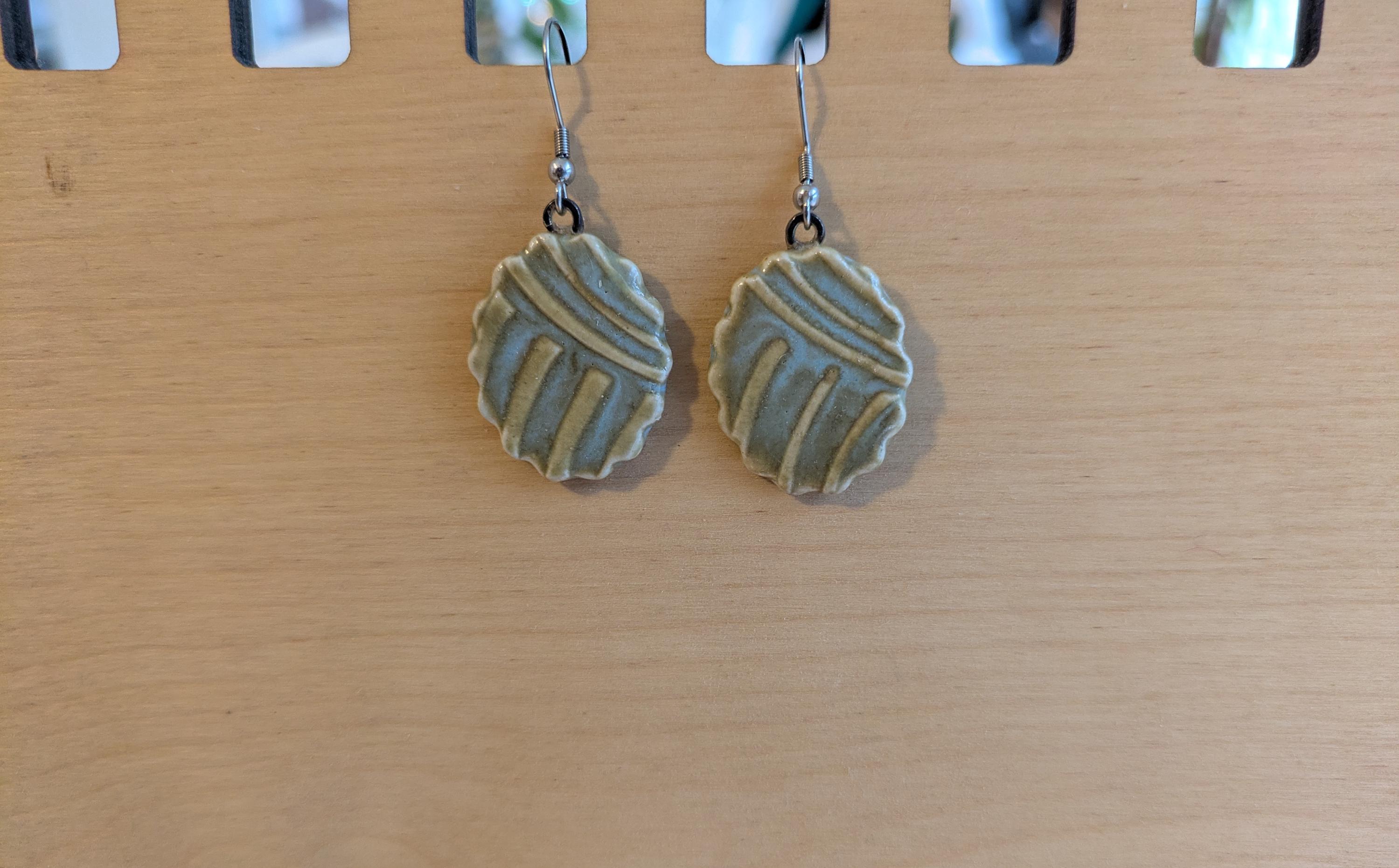 Made by hand in my home pottery studio using white stoneware clay. All glazes used are food-safe. Fishhooks are hypo-allergenic stainless steel.